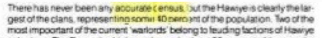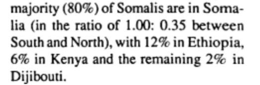 It is by virtue of early expansion, migration and commercial conquest that Hawiye is argued to be the largest Somali tribe according to the UN, the CIA among others. They form almost 40% of the current Somalia. Somalia comprises 80% of the Somalis including those in neighbouring countries however, the Hawiye retain an approxmite 50% in the Somali areas of Kenya, a smaller percentage in Ethiopia and negligable in Djibouti.