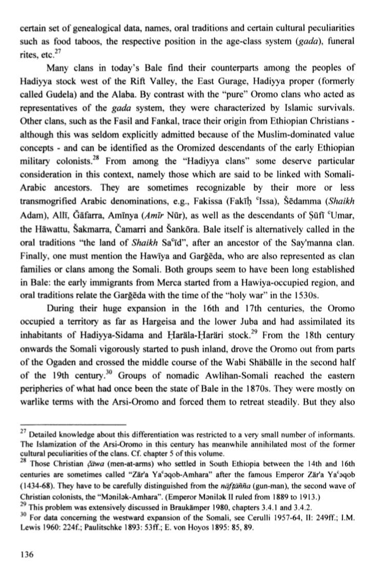 The Hawiye had been in the Oromia regions particularly Arussia and Western Bale since the time of Sheikh Nur Hussein who travelled from Merca in the 13th century to teach religion to the many pagan nomadic tribes of Ethiopia.